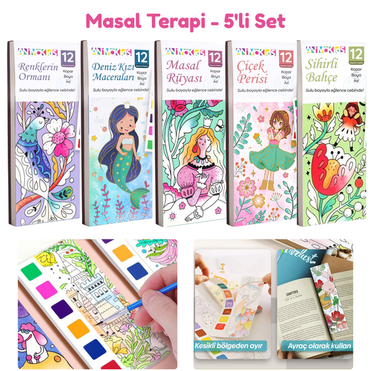Sulu Boya Sanat Setleri – Çocuk & Yetişkin 5’li Set (Her Kitap için 1 Fırça Hediye)