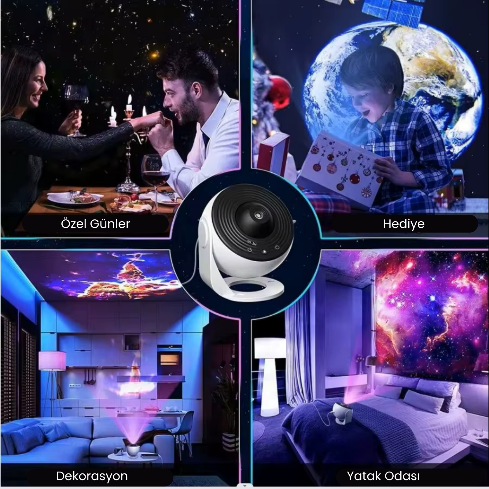 Odama sihirli bir hava kattı! Tavanımda parlayan yıldızlar sayesinde huzur dolu bir atmosfer oluştu. Döner projeksiyon ve zamanlayıcı özelliği harika! 🌙
